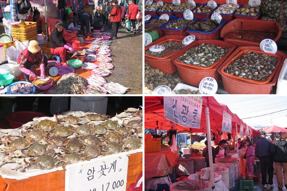 공매 때의 공판장 풍경도 색다른 구경거리. 앞가슴에 손을 붙이고 손가락을 세웠다접었다하며 흥정하는 경매인들, 경매받은 생선상자를 리어카에 옮겨 싣는 상인들, 조금이라도 더 집어오려는 시장아주머니의 아우성 등은 치열한 삶의 풍경을 보여준다.