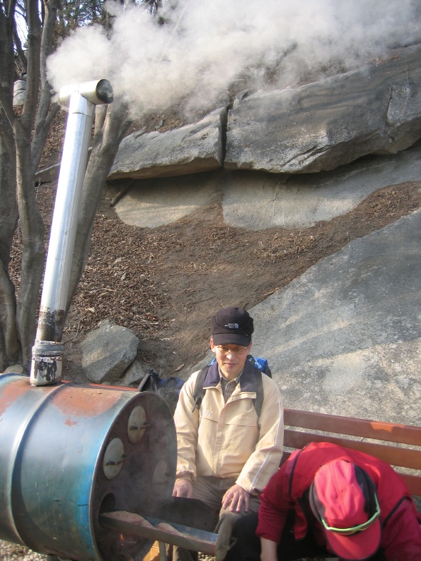 | 등산객을 위한 군고구마 보시. |