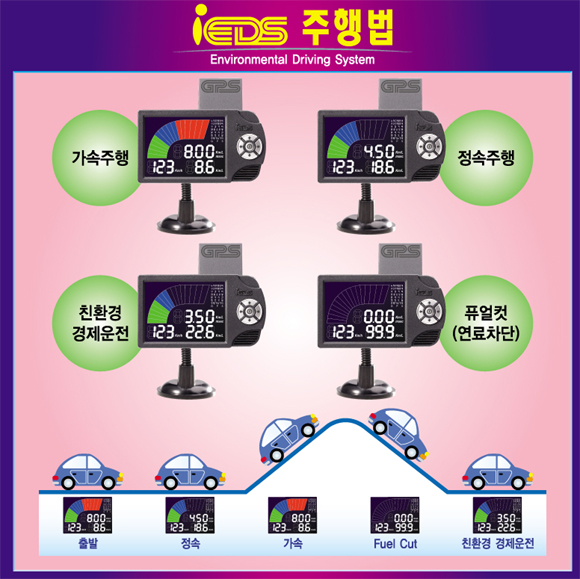회사측에 따르면 iEDS는 연료분사 밸브의 개변신호를 RF(무선주파수)로 LCD 상에 히스토그램으로 나타내 운전자 스스로 자동차의 연료분사량을 제어할 수 있도록 했다. 또 GPS 기술을 더해 실시간 주행연비와 연료분사량, 누적연비, 이동거리 등 7가지 정보를 LCD 화면과 음성정보로 제공한다. iEDS는 초보 운전자도 5분만 사용설명을 들으면 사용이 가능하다. 또 iEDS가 제공하는 정보대로 운전할 경우 차의 연식과 차 관리상태에 따라 차이는 있으나 완전연소상태로 운전할 수 있어 유해가스 배출량을 90% 이상 줄일 수 있다.