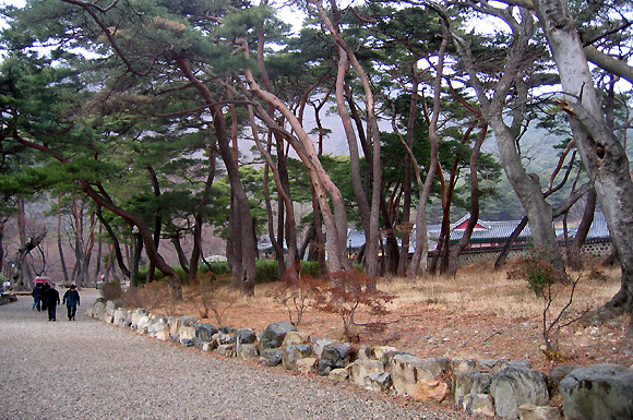 그 때문일까. 빗속의 보경사는 맑고 그윽한 울림으로 다가온다. ‘이 비 그치면 / 내 마음 강나루 긴 언덕에 / 서러운 풀빛이 짙어 오것다 // 푸르른 보리밭길 / 맑은 하늘에 / 종달새만 무어라고 지껄이것다....’를 읊조리기에는 아직 이르지만 보경사 불이문을 들어서자 청정한 기운으로 맞아주는 소나무숲은 이수복의 시 <봄비>를 저도 몰래 흥얼거리게 만든다.