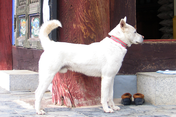 또 하나 눈길을 끄는 게 있다. 조용한 걸음새로 사람들을 피해 경내를 다니는 진돗개 한 마리. 소나무 아래 흰 몸을 접고 앉았다가 사뿐사뿐 걸음을 옮겨 대웅전 처마 밑으로 옮겨가기도 한다. 그 때 대웅전에서 나오던 보살이 개를 보더니 말한다. “진돌아? 너 커피 마시고 싶으냐?” 그 말에 개는 순한 눈빛으로 뒷다리를 접고 그 앞에 앉는다. 잠시 후 보살이 종이컵에 커피를 담아 내밀자 혓바닥으로 "후루룩 후루룩" 달게 커피를 마신다. 주변으로 가득 번지는 커피향…. 진돌이는 전생에 커피를 좋아했던 인간이었을까. 절집을 나오면서 내내 그 생각이 따라붙는다.