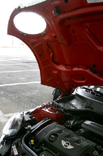 뉴 쿠퍼는 푸시버튼으로 시동을 건다. 고성능차에서 즐겨 사용하는 방식을 미니에까지 이전시킨 것. 키를 꽂고 버튼을 눌러 시동을 켜면 그럴 듯한 엔진소리가 터져나온다. 엔진은 조용하지 않다. 가속 페달을 밟으면 차가 탄력을 받기 전 엔진소리가 먼저 커진다. 때리려고 폼만 잡아도 목놓아 울어버리는 엄살 심한 아이같다. 소리를 들으면 시속 160km는 넘는 것 같은데 계기판 바늘은 100km/h를 가르킨다.