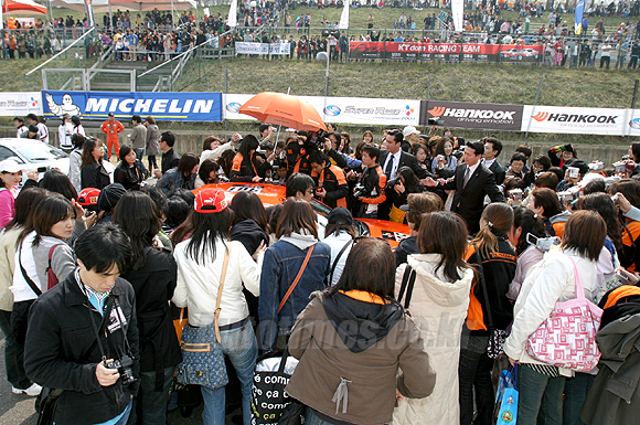 총 20랩을 돌아야 하는 KGTC 1라운드 1히트 레이스가 경기 종반으로 들어설 즈음 10코너를 돌아나오던 파이널레이싱의 한치우가 방호벽과 충돌하면서 더 이상 경기를 진행할 수 없게 만들었다. 결국 16랩을 통과한 통합전의 경우 황진우가 GT, 오일기가 투어링A 우승컵을 안았다. GT 2위와 3위는 윤철수와 조항우가, 투어링 A 2위와 3위는 류시원과 조성민 몫이었다.