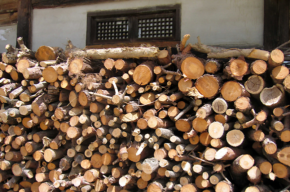 | 처마 아래 그득한 땔감 |