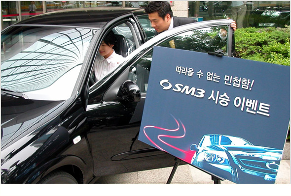 르노삼성은 새 모델 시판을 기념해 SM3의 주행성능을 체험할 수 있는 "따라올 수 없는 민첩함!-2008 SM3 고객 시승 이벤트"를 개최한다. 이번 이벤트는 2008년형 SM3의 마케팅 컨셉트인 "민첩함"을 부각시키고, 타깃층인 20~30대 고객과의 직접적인 커뮤니케이션을 강화하기 위해 마련했다. 르노삼성 전국 영업지점에서 4일부터 7월1일까지 진행한다. 참여를 원하면 르노삼성 홈페이지 (www.renaultsamsungm.com)나 전국 170개 영업지점을 방문, 신청할 수 있다. 회사측은 시승고객 중 추첨을 통해 홍콩 크루즈 여행권, 고급 내비게이션, 에스보드, 오르세 미술관전 티켓 등 푸짐한 상품을 제공한다.