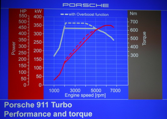 뉴 911 터보 카브리올레는 바이 터보차저와 가변 터빈구조(VTG)의 3,600cc급 6기통 박서엔진을 얹어 포르쉐의 전통을 이었다. 1,950rpm에서 480마력의 힘을 낸다. 토크는 63.3kg·m에 이른다. 오버부스트 기능의 새로운 ‘스포츠 크로노 터보 패키지’ 옵션을 장착하면 순간적으로 토크를 최고 69.4kg·m까지 끌어올릴 수 있다. 0→시속 100km 가속시간은 수동변속기가 4초, 팁트로닉은 3.8초다. 수동과 자동변속기 모델은 모두 최고 시속이 310km에 달한다. 연비는 7.75km/ℓ.
