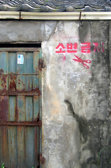 시내버스 승강장에는 오래도록 버스도, 사람도 오지 않았습니다. 금방이라도 무너져내릴 것 같은 까치만화방을 지나 어느 골목으로 들어서다가 아, 탄성을 내지르고 말았습니다. 녹슨 대문이 매달린 시멘트 담벼락에 붉은색 페인트로 써놓은 정겨운 문구! ‘소변금지’. 그 옆엔 선명한 가위 그림까지 빼놓지 않고 곁들여 놓았더군요.