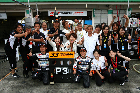 한국타이어가 지난 29일 일본 수고 스포츠랜드에서 열린 슈퍼 GT 자동차 경주대회 5라운드에서 3위를 했다고 밝혔다. 총 22대의 차량이 참가한 GT300 클래스에서 한국타이어가 후원하는 한국 NSC 포르쉐 팀은 예선 11위에서 시작해 3위로 결승을 통과하는 저력을 선보이며 포디엄 피니시를 달성했다.