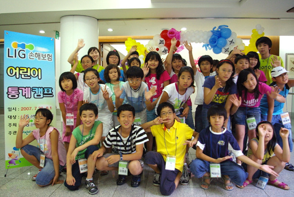LIG손해보험은 7월 30일부터 2박3일간 우수 보험 가입자의 초등학생 자녀 50명을 수원 소재 LIG인재니움으로 초청해 ‘어린이 통계 캠프’를 열었다.