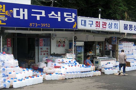 | 약수 물통 파는 가게들 |