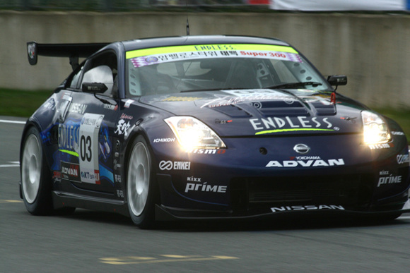 닛산 페어레이디 350Z를 몬 엔드리스 스포츠팀의 카게야마 마사미와 아오키 타카유키가 태백 슈퍼300 국제 자동차경주대회 예선을 1위로 통과했다.