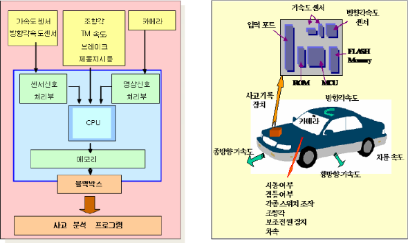 산업자원부 기술표준원은 비행기에 쓰고 있는 블랙박스를 일반 차에도 사용할 수 있도록 자동차용 블랙박스 국가규격을 오는 8일 제정·고시함으로써 향후 자동차에도 블랙박스 장착이 획기적으로 늘어날 전망이다. 블랙박스란 사고 당시 비행기의 모든 운행상황, 즉 속도, 고도, 조종사의 음성 등을 저장해 사후에 데이터를 분석함으로써 사고원인을 알아내 장래의 사고를 예방하는 데 사용되는 "사고기록장치"다. 자동차에도 이러한 블랙박스를 장착함으로써 사고가 났을 경우 사고원인 규명은 물론 운전자 스스로 조심운전을 유도할 수 있을 것으로 보인다.