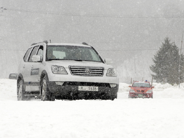 기아는 지난 19~20일 강원도 평창군에서 열린 스노랠리 대회를 위해 특별 제작된 눈길트랙에서 동호회원과 일반인을 대상으로 모하비 시승행사를 열었다고 21일 밝혔다. 모하비에는 노면상황에 따라 앞뒤 바퀴에 적절히 구동력을 배분하는 풀타임 4WD, 차가 미끄러지는 걸 방지해 운전자를 보호하는 차체자세제어장치가 적용돼 악조건에서도 최상의 주행성능을 발휘한다고 기아측은 설명했다. 이 날 행사에는 연예인 카레이싱팀인 R-스타즈의 감독으로 활동중인 이세창 씨가 눈길트랙에서 모하비를 운전하며 다양한 오프로드 드라이브의 진수를 선보여 관람객들의 많은 눈길을 끌었다.