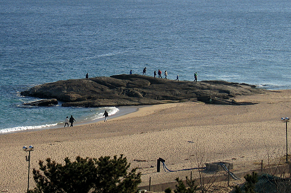 봉포해수욕장과 이어지는 백사장엔, 아마 다른 곳에서라면 유치하게 보여졌을 인공 야자수가 나름대로 멋스럽게 느껴질 만큼 동해의 위용이 주변을 압도한다. 방안에 앉아서도 끼룩대는 갈매기와 부서지는 파도소리를 바로 곁에서 보고 듣는 것처럼 느낄 수 있지만, 피 끓는 청춘들은 어깨를 맞댄 채 쉼없이 백사장을 거닌다. 추위를 겁내지 않는 이들은 그들만이 아니다. 밀려왔다 밀려가는 파도를 쫓아 해변에 무수한 발자국을 찍어대는 아이들 앞에선 매운 해풍도 저만치 물러선다.
