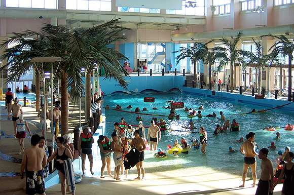 아이들이 좋아하는 파도풀은 실내와 실외 두 곳이 있는데, 야외온천파도풀인 샤크웨이브는 길이 50m, 폭 45m로 다양한 파도를 연출한다. 실내파도풀의 파도도 엄청나게 높기 때문에 파도타임에는 구명조끼를 착용하지 않으면 샤크블루에 들어갈 수 없다. 실내에서 야외로 이어지는 유스풀은 중간중간 이벤트탕들이 위치하고 있어 체온이 떨어지면 그때그때 이용할 수 있도록 했다.