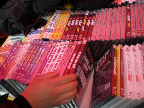 | 경기장 밖에서 판매하는 경기 DVD. |