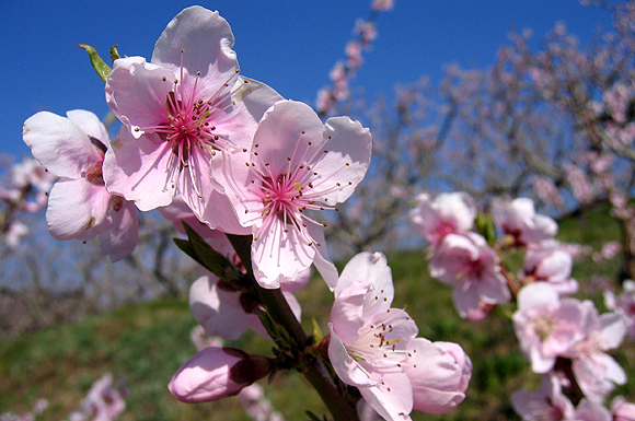 국도 34번을 따라 이어지는 황장리, 지품리, 복곡리, 수암리, 낙평리, 신안리 등 영덕군 지품면 일대는 온마을이 복사꽃 더미에 파묻힌다. 특히 삼화리 삼협마을은 산자락 전체가 복숭아밭이다. 좁은 산길을 따라 올라가면 광활한 복숭아밭이 펼쳐지는데, 그야말로 무릉도원이 예가 아닌가 싶을 정도다.