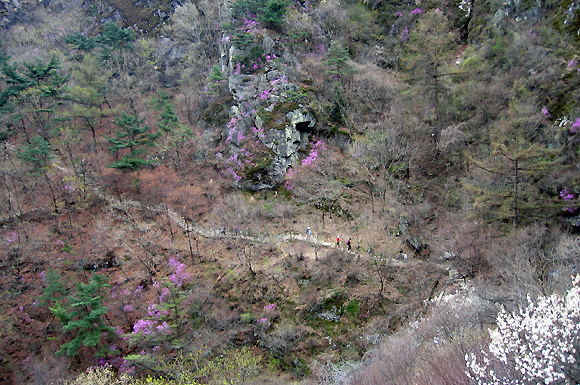 연분홍 꽃구름이 뭉게뭉게 피어오르기 시작했다. 구미 금오산도립공원은 지금 벚꽃이 한창이다. 진입로의 화사한 벚꽃터널은 말할 것도 없고, 금오저수지를 에워싼 벚나무들도 다퉈 꽃을 피워 멀리서 보면 그야말로 울긋불긋 꽃대궐이 따로 없다. 짓궂은 봄바람에 난분분 몸을 날려 저수지 물 위를 수놓은 꽃잎은 그 애잔함이 걸음을 멈추게 한다.