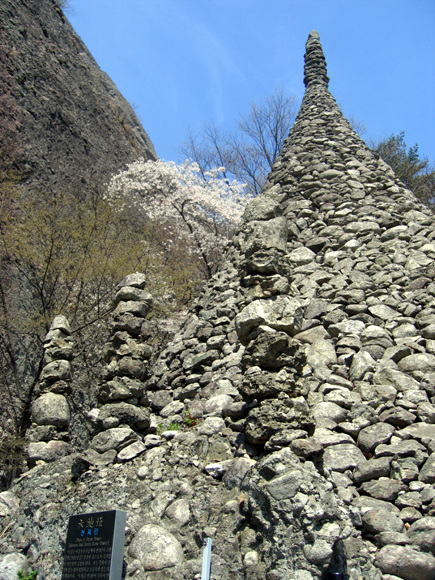 상가를 벗어나면 저 멀리 그 유명한, 말의 귀를 닮았다는 마이산의 두 산봉우리가 보이기 시작한다. 그에 앞서 발목을 잡는 건 마이산 입구에 조성된 인공호수인 탑영제다. 오리배가 평화롭게 떠다니는 수면 위로 마이산이 통째로 비춰진다. 또 호수 주변을 빈틈없이 꽃피운 벚꽃행렬이 길게길게 이어진다. 그 꽃그늘 아래 아예 자리를 펴고 앉아 즐기는 사람들을 보면 신선놀음이 따로 없는 듯하다.
