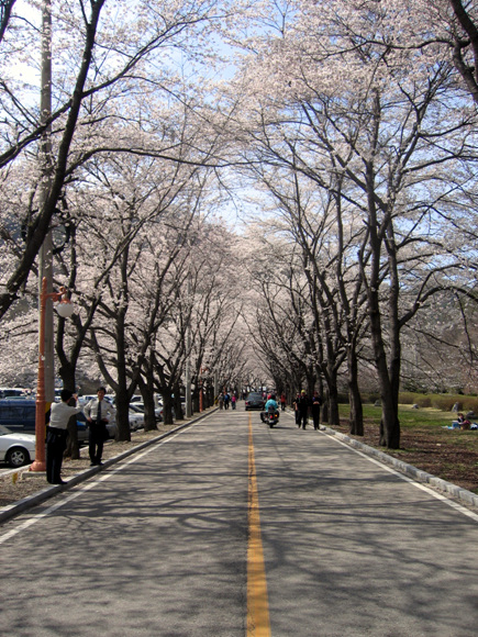 온 세상이 연분홍 꽃구름에 뒤덮였다. 바야흐로 벚꽃세상이다. 쌍계사 십리벚꽃길, 진해 군항제, 전주-군산 간 백리 벚꽃길, 여의도 윤중로 등 전국의 소문난 벚꽃 군락지에 상춘객이 몰리고 있다. ‘벚꽃’하면 이 곳도 둘째가라면 서러운 곳. 전북 진안군 마이산도립공원의 벚꽃단지다.