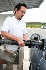 시승 당일 잠실 소마미술관에서 이동식 수소 충전소가 있는 경기도 이천 BMW물류센터까지 80여km를 주행한 뒤 수소를 충전했다. 운전석에 있는 연료주입 버튼을 누르면 수소주입구가 열린다. 일반 가솔린 주유관보다 3~4배 정도 두꺼운 장치를 연결하면 내부에서 연료가 주입된다. 단, 수소를 주유할 때는 반드시 차를 정지 상태에 두고 시동장치를 꺼야 한다. 이런 환경이 조성되지 않으면 충전은 바로 중단된다. 충전시간은 7~8분 정도.