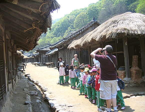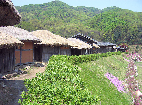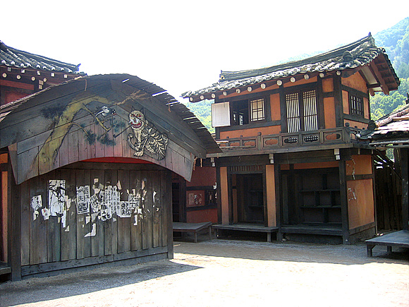 민속마을세트로 가면 19세기말 종로에 있던 저자거리를 재현해 놓았는데 기와집 26채, 초가집 35채로 총 61채의 가구가 세트라기보다는 하나의 마을처럼 구성됐다. 철저한 고증을 토대로 짓기 위해 5,000여명의 스태프와 한옥에 대한 문화재 기능보유자가 참여해 만든 이 세트는 영화 <취화선>을 찍기 위해 20여억 원을 투자해 짓게 됐다. <취화선>은 한국영화의 거장인 임권택 감독의 작품으로, 조선후기 천재화가 장승업의 일대기를 그렸다. 이 밖에도 이 세트는 <토지> <다모> <해신> 등의 TV 사극을 비롯해 <왕의 남자> <스캔들> 등 여러 사극을 찍었다.