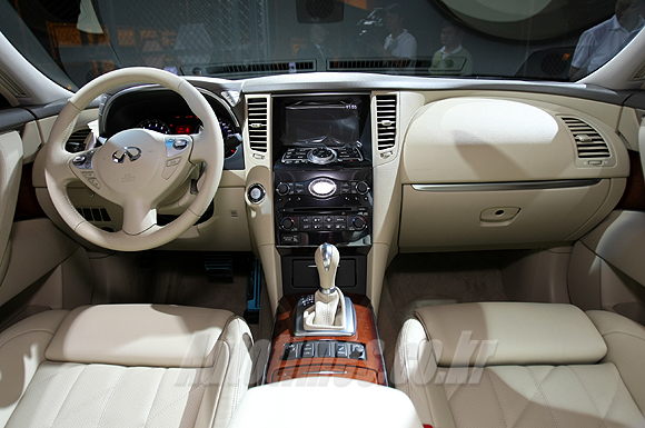 편의장치로는 차 주변의 360도 상황을 보여주는 어라운드 뷰 모니터(AVM), 웰컴 라이팅 시스템, 11개 스피커의 보스 프리미엄 서라운드 시스템, 차내 공기 모니터링 시스템(ACSS)을 두 차 모두에 기본으로 적용했다. FX50은 마그네슘 패들 시프트와 뒷좌석 DVD 엔터테인먼트 시스템도 더했다.