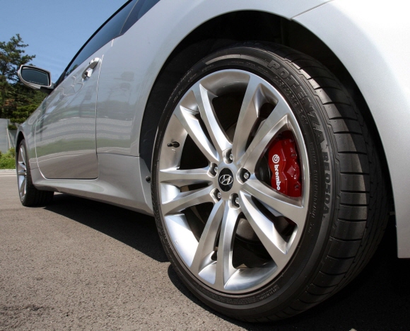9월중 출시될 제네시스 쿠페는 정통 스포츠카로, 브렘보의 캘리퍼와 디스크가 국산차 최초로 적용된다. 브렘보 브레이크는 4바퀴 모두에 4피스톤 사양을 채택했다. 또 브리지스톤의 포텐자 타이어가 국산차 최초로 장착된다.