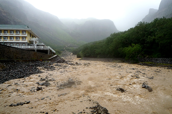 아직 관광객이 많지 않아서인지 남파 코스 천지 조망대에는 경계를 서는 군인들의 간섭이 심하지 않고, 한쪽에 향을 피우는 제단도 조촐하게 마련돼 있다. 내일 서파-북파 종주 트래킹을 부디 무사히 마칠 수 있기를 빈 후 천지를 내려오는 길에 압록강 대협곡이 발길을 잡는다. 기묘한 용암지역이 협곡을 이룬 건너편은 북한땅이다. 저지대로 내려오면 나무가 땅에 묻혀 숯이 된 탄화목(炭化木)도 볼 수 있다.