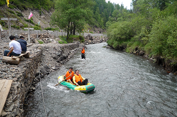 그래도 아직 서파나 북파 코스에 비해 볼거리가 부족해서인지 남파 코스는 압록강 래프팅으로 차별화를 꾀하고 있었다. 압록강 상류에 해당하는 물줄기를 타고 남문까지 내려가는데, 이 물줄기가 북한과의 국경선인 셈이다. 2인용 고무보트가 강안(江岸) 이쪽저쪽을 부딪치며 내려오게 되니 중국과 북한을 왔다갔다하는 형국이다.