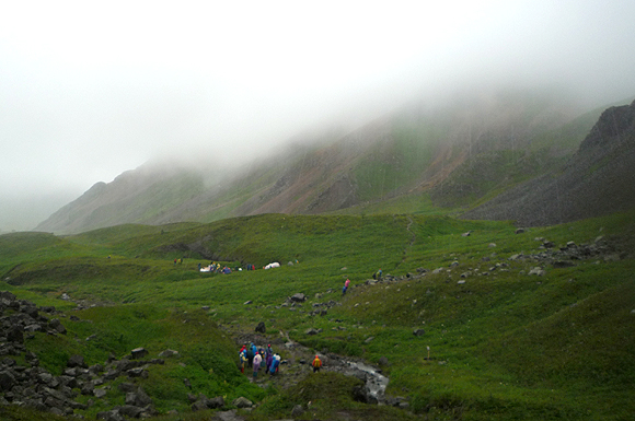 서파는 완만한 구릉지와 고산지대를 이루고 있어 최적의 트래킹 코스로 손꼽힌다는데 우리에겐 최악의 상황이었다. 광활한 초원지대에 지천으로 폈다는 야생화의 모습은 보이지 않았다. 안개는 그 모든 걸 다 덮어버렸고, 줄곧 앞사람의 엉덩이만 보며 혹시나 일행을 놓치지 않을까 기를 쓰고 걸어야 했다. 그나마 농담을 주고받던 여유는 백두산 종주 코스 중 가장 힘든 코스라 손꼽히는 백운봉을 오르며 꽁꽁 얼어붙고 말았다. 누구도 입을 여는 이가 없었고, 거센 바람에 몸이 날아갈까 최대한 공기저항을 줄인 자세로 산을 기어올랐다.