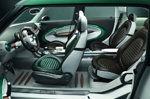 독특한 인테리어에서 가장 먼저 눈에 띄는 건 대시보드에 있는 원형의 레이저 프로젝터다. 미니의 새로운 디스플레이 방식으로 제작된 이 기기는 각종 엔터테이먼트 기능과 텔레커뮤니케이션, 내비게이션 시스템 등을 포함하고 있다. 4도어는 비대칭으로 열린다. 운전석 뒤쪽의 도어는 슬라이드로, 조수석 뒤쪽의 도어는 일반 개폐 방식을 사용한 게 특징이다. 테일 게이트 역시 보통 도어처럼 슬라이딩으로 조수석 방향으로 열린다.