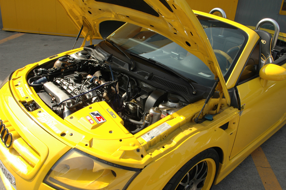 영모터스가 튜닝한 TT 콰트로는 고성능을 얻기 위해 가레트 GT 2817RT 터빈을 기본으로 파우터 단조 커넥팅로드와 JE 단조 피스톤을 이용했다. 여기에 264도 흡배기 하이캠을 올렸고, 650cc 대용량 인젝터 및 연료펌프, NGK 열가 10 이리듐 플러그 및 HKS 레이싱 블로우 오프 밸브를 더했다. 흡기 시스템으로는 HKS 오픈필터와 자체 제작한 인테이크 파이프, 삼코 실리콘호스를 세팅했다. 배기 시스템은 자체 제작한 배기 매니폴드 및 다운 파이프, HKS 대구경 스포츠 촉매에 이어 준비엘의 중간파이프와 엔드 머플러를 장착했다. 특히 ECU는 실차 다이노 맵핑과 실차 로드 맵핑을 통해 최고출력을 225마력까지 얻는다.