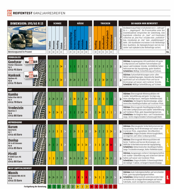 이번 테스트에서는 폭스바겐 골프를 대상으로 총 8개의 4계절용 타이어가 동원됐다. 규격은 195/65R 15 T/H/V로 진행됐다. 옵티모 4S는 날씨에 상관없이 뛰어난 균형감을 유지해 높은 점수를 받았다. 건조한 노면은 물론 빗길과 눈길에서의 핸들링 성능 테스트에서 호평받은 것. 또 가장 중요한 안전성 기준인 제동성능에서도 건조한 노면은 물론 빗길, 눈길 등 모든 조건에서 최고 점수를 받은 유일한 제품이 됐다.