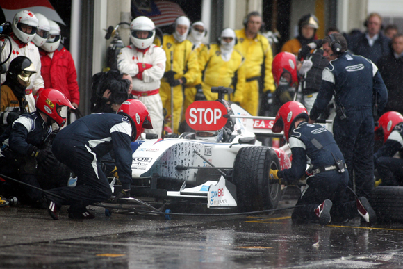 경기 초반 의욕적인 출발을 보인 각 팀이 오후들어 더욱 거세진 빗줄기로 잇따라 스핀하며 17번째 포지션에서 출발한 A1팀코리아는 수월하게 11위에 올랐다. 특히 10랩째 직선주로에서는 인도네시아팀을 추월하는 데 성공, 10위에 오르며 득점 가능성을 높였다. 그러나 첫 번째 피트스톱을 마치고 난 16랩에서 코너 스핀으로 코스를 이탈한 황진우는 재출발한 후 안정된 주행으로 앞선 차들을 추월하는 데 성공했다.