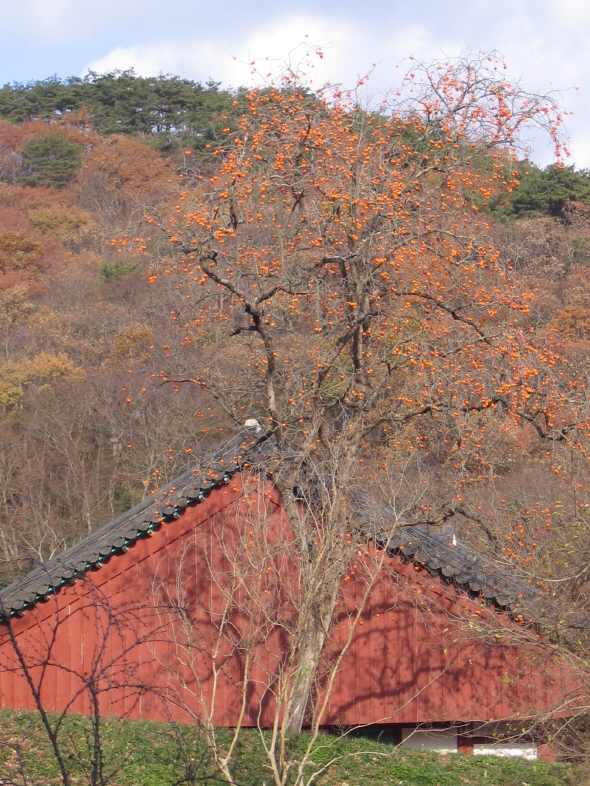호남의 내금강이라 불리는 도솔산(일명 선운산) 북쪽에 자리한 선운사의 가을풍경도 이 맘 때는 한 폭의 그림이다. 눈길 주는 곳마다 가을색이 출렁인다. 주렁주렁 붉은 알전구를 매단 듯한 늙은 감나무는 절집 지붕 위로 금방 내려앉을 듯하다.