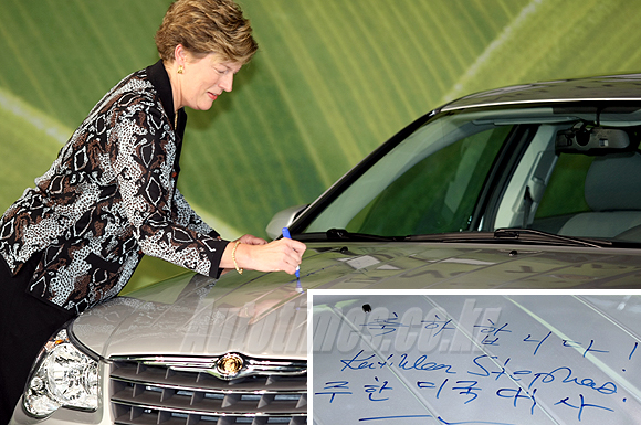 | 세브링 디젤 출시 행사에 참석해 기념 사인중인 캐슬린 스티븐스 신임 주한 미국 대사 |