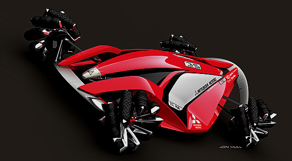 미쓰비시 ‘MMR25’는 2025년의 랠리 카로 한 개의 바퀴 축에 8개의 독립 제어 가능한 모터를 달았다. 이 때문에 8×4으로 구동이 된다. 즉 전진, 후진에 이어 360도 턴이 자유롭다. 메르세데스 벤츠의 ‘포뮬러 제로’는 미래의 F1 머신. 봅슬레이와 요트 경기에서 영감을 얻었고 4바퀴에 고성능 모터를 달았다. 뛰어난 노면 추종성에 급경사는 물론 제트 코스터와 같이 공중을 회전하는 코스도 주행할 수 있다.