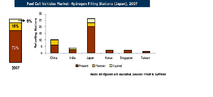 보고서에 따르면 연료전지차시장은 혼다가 소비자에게 FCX를 리스하면서 시작됐다. 그러나 아직도 수소 인프라가 풍부한 지역에만 제한돼 있다. 수소연료보급소는 2015년경 확장될 것으로 보이며, 이 시기에 상용화 전단계의 기술개량 및 소량생산 등이 이뤄질 것으로 예상된다. 또 2016년 이후에야 비로소 생산이 늘어나면서 대량생산을 이끌 것으로 분석된다.