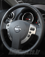3스포크 스티어링 휠이 눈에 들어온다. 메탈릭 소재를 일부 적용해 첨단의 이미지를 준다. 스티어링 휠 우측에는 크루즈컨트롤이, 좌측에는 채널 전환 스위치가 있다. 한가운데 크롬 소재의 닛산 로고가 선명하다. 인상적인 부분은 계기판이다. 은은한 불빛이 시각적 피로를 줄인다. 엔진회전계와 속도계 사이의 작은 트립 모니터에 여러 정보가 표시되는 건 여느 차종과 비슷하다.