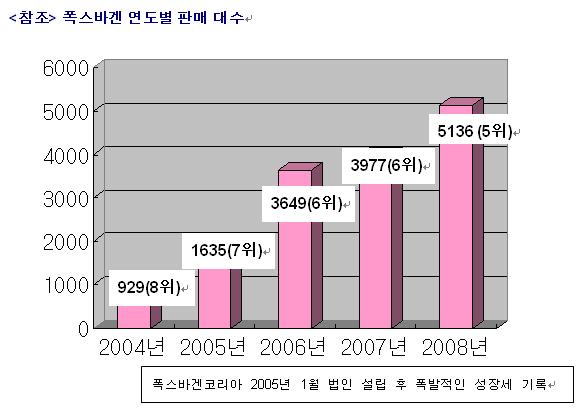 국내 법인 설립 이후 4년만에 6배라는 폭발적인 성장을 이룬 폭스바겐은 올해 약 5,000대의 판매목표를 세웠다. 폭스바겐은 이를 위해 인재양성과 서비스 품질 개선 등에 투자할 예정이다. 판매 및 서비스 직원들의 교육 강화는 물론 서비스 프로세스를 재정비, 기존 고객의 만족도를 대폭 끌어올릴 계획이다. 또 고객 중심의 커뮤니케이션을 통해 고객만족도를 극대화할 방침이다. 시승행사 등 고객과의 접점을 더욱 확대하는 마케팅도 추진해 고객들에게 성능, 경제성, 안전성, 가격 등 모든 조건을 만족시키는 폭스바겐의 진면목을 직접 보여줌으로써 불황을 극복한다는 전략이다.