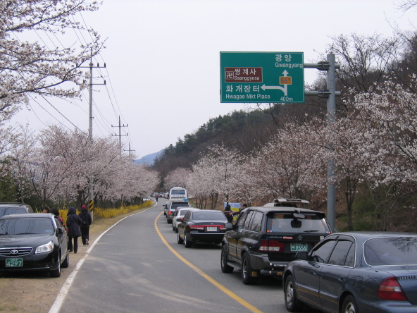 이 곳은 그 절정에 있다. 화개장터에서 쌍계사에 이르는, 그 유명한 십리벚꽃길. 맑은 화개동천을 따라 절까지 이어지는 구절양장의 길 양쪽으로 수만 그루의 벚나무가 하늘을 가려 벚꽃터널을 이룬다. 청춘남녀가 이 길을 함께 걸으면 백년해로한다고 해 ‘혼례길’이라는 또 다른 이름이 붙은 낭만의 길이다. 때를 놓칠세라, 이 곳에서는 4월3일~5일 제17회 화개장터 벚꽃축제가 열린다. 화사한 꽃구경과 함께 ‘처녀 불알’, ‘스님 상투’ 등 없는 것 빼고 다 있는, 화개장터의 신명나는 장구경도 즐겨보자.