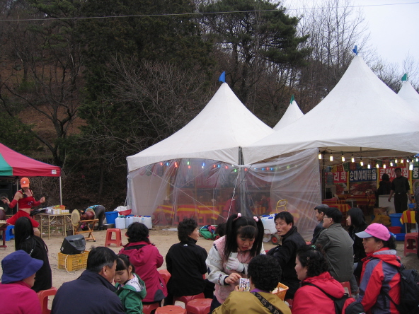 더덕과 좁쌀을 갈아 만들었다는 동동주 한 주전자가 금방 바닥을 드러낸다. 재첩을 넣어 만든 재첩부침개는 아직 절반도 더 남았는데…. 옥화네를 불러 다시 동동주 한 주전자를 청한다. 장터쪽에서는 여전히 엿장수 가위질 소리가 요란하다.