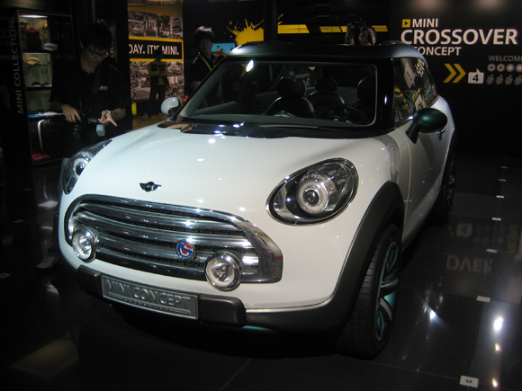 아시아 최초로 크로스오버 컨셉트를 선보이인 미니는 브랜드의 지속적인 발전가능성과 다양한 비전을 제시했다. 미니의 수많은 디자이너들과 기술자들의 다양한 아이디어를 모두 수렴한 크로스오버의 특징은 4m가 넘는 차체 길이, 인테리어와 드라이브 트레인, 4륜구동 등이다. 또 지구본을 형상화한 3차원의 레이아웃으로 기존의 엔터테인먼트, 통신, 내비게이션, 속도계 등을 통합적으로 중앙에 보여주고 있다. 현대적인 레이저 투사기술을 도입, 광학적인 2개 반구체의 분리가 가능해 운전자와 조수석 탑승자는 서로 다른 개별화면을 동시에 볼 수 있다. 미니 센터레일 시스템은 센터콘솔부터 뒷좌석까지 중앙이 레일 시스템으로 연결돼 물건을 쉽게 옮길 수 있으며 다양한 옵션을 장착할 수 있다.