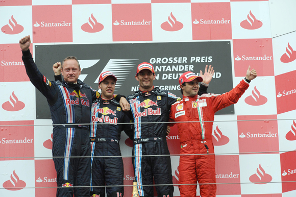 12일 독일 뉘르브르크링에서 열린 F1 9라운드 경기에서 마크 웨버는 경기 초반 받은 페널티에도 불구하고 우승컵을 거머쥐면서 팀 2연승의 성과를 거뒀다. 여기에다 팀 동료인 세바스티안 바텔이 2위로 경기를 마감하면서 원투 승리의 기쁨도 맛봤다. 3위는 상승세로 돌아선 페라리의 필립 마사에 돌아갔다. 니코 로스베릭(윌리엄스 토요타), 젠슨 버튼(브라운 F1팀), 루벤스 바르첼로(브라운 F1팀)가 다음 순위를 이었다.