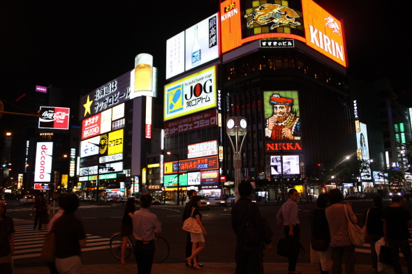 홋카이도의 최대 환락가로 손꼽히는 스스키노에는 4,500여 개의 음식점과 오락시설들이 밀집해 있다. "라멘 요코초(ラーメン横丁)" 등 홋카이도를 대표하는 맛집들도 많다. 인근의 타누키코우지는 삿포로 중심가 7개 블록 동서 1km에 걸쳐 뻗어 있는 전천후형 상점거리로, 밤이 깊어갈 수록 팽팽한 열기가 느껴진다.