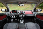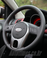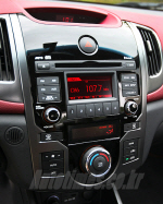인테리어에서는 포르테의 단점을 보완하려는 시도가 보인다. 센터페시아에 하이그로시 블랙 패널을 넣어 무광택 내장보다 세련된 느낌을 선사한다. 다만 포인트로 들어간, 계기판과 대시보드로 이어지는 붉은색 계열 인조가죽 인테리어와 문 손잡이 등에 쓰인 크롬도금 장식은 인테리어의 일관성을 떨어뜨린다. 약간 산만하다. 중간중간 지나치게 원가를 절감한 듯한 플라스틱 내장도 거슬린다. 쏘울 이후 채용한 라이팅 스피커는 재미있는 장치이긴 하지만 운전 중에는 시선이 쏠려 집중력을 떨어뜨리는 역효과를 내기도 한다.