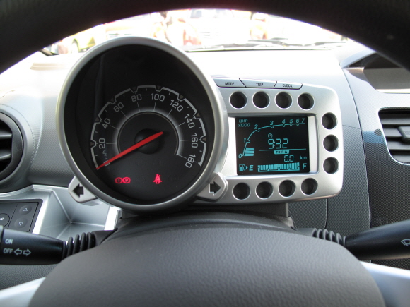새 차는 공격적인 외관에 어울리도록 실내를 역동적으로 만들었다. 스티어링 휠 너머로 바이크에서나 볼 수 있는 계기판이 자리잡고 있다. 왼쪽 편은 아날로그 속도계, 오른쪽 편은 디지털 엔진회전계와 각종 정보를 표기하는 트립창이다.