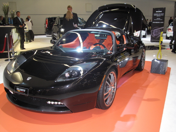 브라부스는 전기 스포츠카 테슬라 로드스터의 브라부스 버전을 전시했다. 브라부스는 전기 스포츠카의 특성 상 배기음이 없다는 점을 감안, 배기 오디오 사운드를 만들었다. 트렁크룸 내 스피커를 통해 배기음이 들려오는 방식이다. 운전자 취향에 따라 여러 형태의 배기사운드를 들을 수 있다.