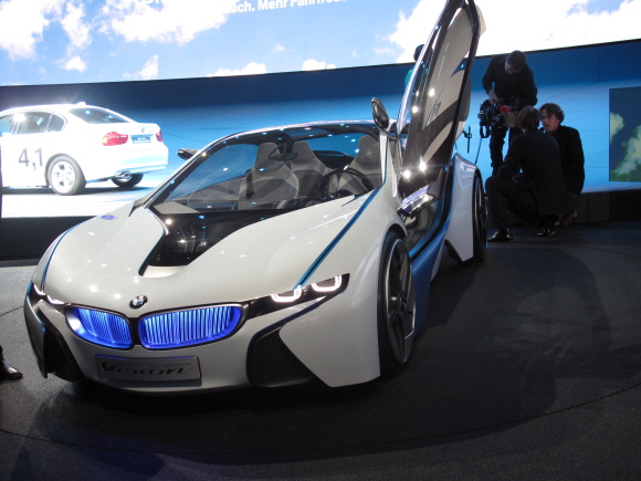 BMW의 비전 이피션트 다이내믹스 컨셉트카는 하이브리드 시스템으로 효율을 크게 높였다. 강력한 스포츠카 형태지만 효율이 높다는 점에서 미래의 트렌드를 나타냈다.